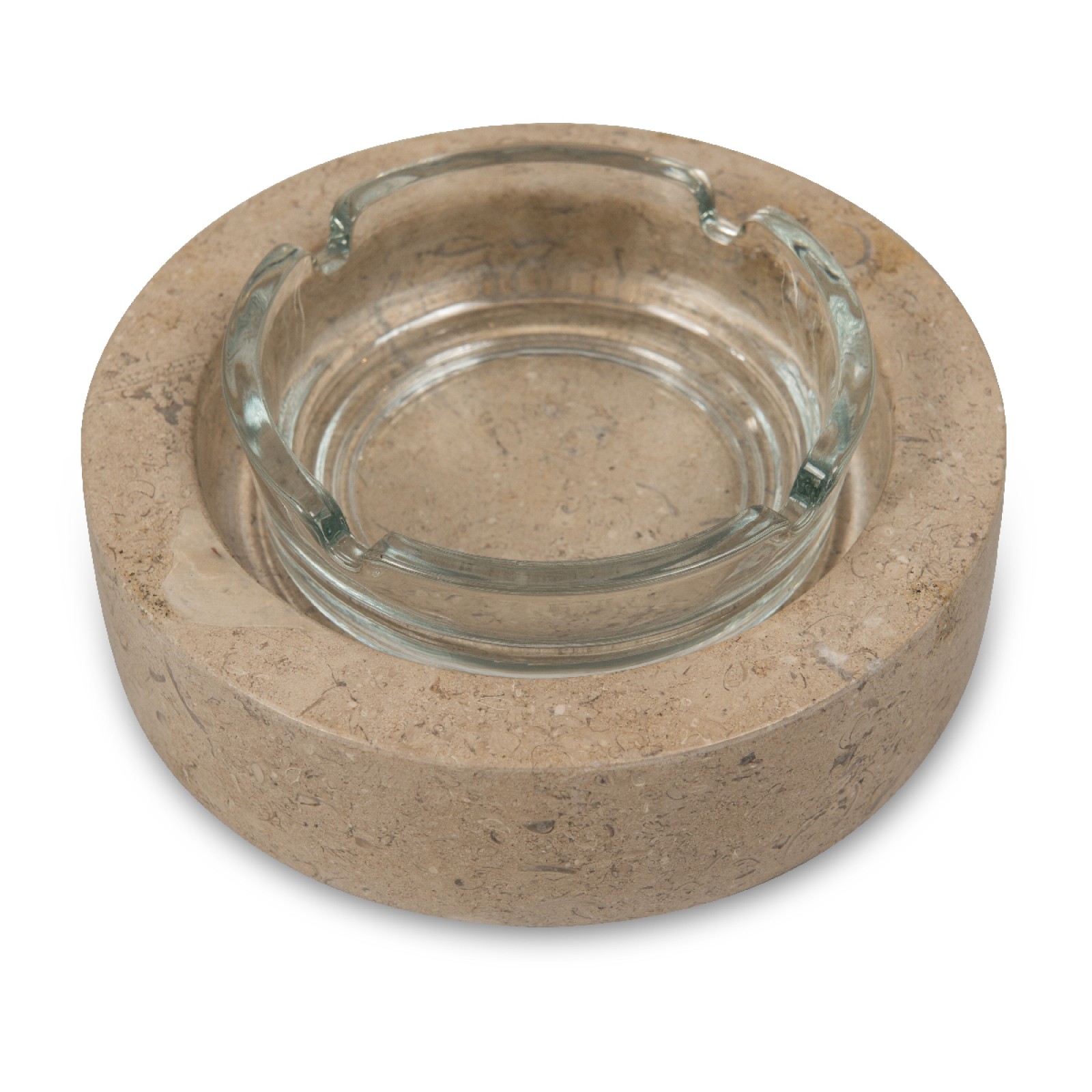 Handcrafted solid piece of marble with a removable glass ashtray